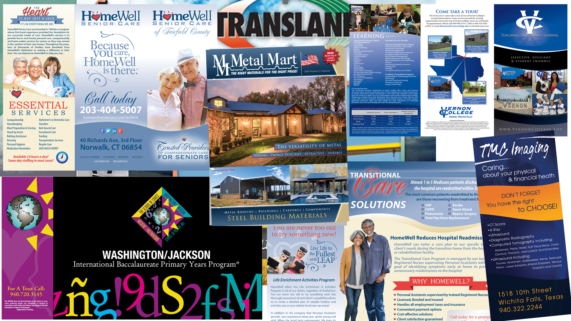 I have done catalogs, postcards, sales packets and brochures of all shapes and sizes. It can be very challenging to make something that is very wordy look pleasing to the eye and that has always been the goal with my layouts.